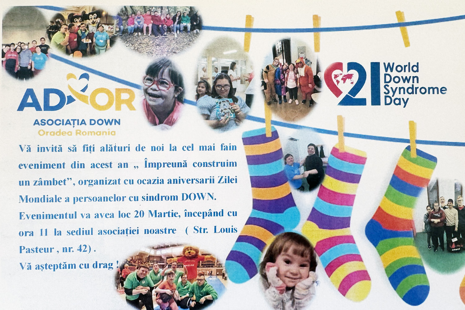 Pe 20 martie, Asociația Down Oradea România organizează un eveniment special dedicat Zilei Mondiale a Sindromului Down. Această zi este un prilej de conștientizare, empatie și susținere pentru persoanele cu Sindrom Down și familiile acestora.